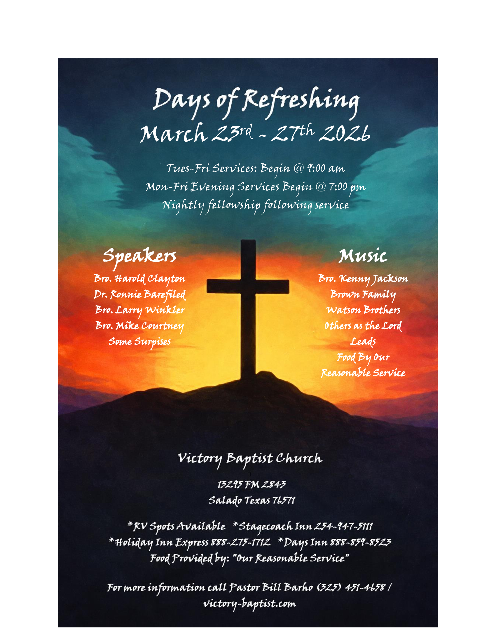 “Days Of Refreshing”, Victory Baptist Church, Salado, TX, Billy Borho, Pastor